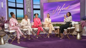 UNIVERSAL CITY, CA – FEBRUARY 25: (L-R) Loni Love, Tamar Braxton, Adrienne Bailon and Jeannie Mai of “The Real” visit “Extra” at Universal Studios Hollywood on February 25, 2016 in Universal City, California. (Photo by Noel Vasquez/Getty Images)