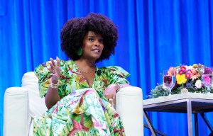 AUSTIN, TEXAS – OCTOBER 02: Tabitha Brown, Actress & Emmy Award-winning Host speaks on stage during 2024 Texas Conference for Women at Austin Convention Center on October 02, 2024 in Austin, Texas. (Photo by Marla Aufmuth/Getty Images for Texas Conference for Women)