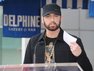 HOLLYWOOD, CALIFORNIA – JANUARY 30: Eminem attends a ceremony honoring Curtis “50 Cent” Jackson with a star on the Hollywood Walk of Fame on January 30, 2020 in Hollywood, California. (Photo by Albert L. Ortega/Getty Images)