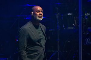 AUSTELL, GEORGIA – MARCH 14: Tyler Perry speaks onstage during the Angie Stone Homegoing Service at Word of Faith Family Worship Cathedral on March 14, 2025 in Austell, Georgia. (Photo by Paras Griffin/Getty Images)