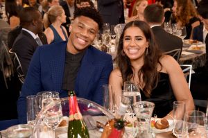 SANTA MONICA, CALIFORNIA – JUNE 24: (L-R) Giannis Antetokounmpo and Mariah Riddlesprigger pose during the 2019 NBA Awards presented by Kia on TNT at Barker Hangar on June 24, 2019 in Santa Monica, California. (Photo by Michael Kovac/Getty Images for Turner Sports)