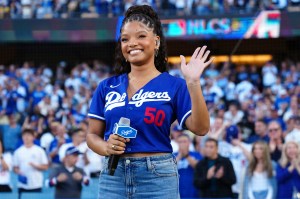 LOS ANGELES, CA – OCTOBER 17: Halle Bailey sings the national anthem prior to Game Four of the National League Championship Series presented by loanDepot between the Milwaukee Brewers and the Los Angeles Dodgers at Dodger Stadium on Friday, October 17, 2025 in Los Angeles, California. (Photo by Mary DeCicco/MLB Photos via Getty Images)
