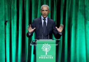 NEW YORK, NEW YORK – DECEMBER 06: Barack Obama speaks onstage during the 2022 Sandy Hook Promise Benefit at The Ziegfeld Ballroom on December 06, 2022 in New York City. (Photo by Dia Dipasupil/Getty Images)