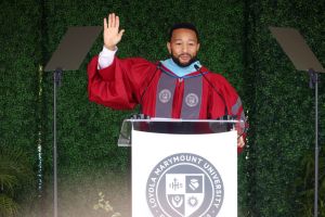 LOS ANGELES, CALIFORNIA – MAY 04: John Legend is seen delivering a speech at Loyola Marymount University’s 2024 Undergraduate Commencement Ceremony at Loyola Marymount University on May 04, 2024 in Los Angeles, California. (Photo by Tommaso Boddi/Getty Images)