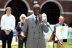 NEW YORK, NEW YORK – JUNE 01: Yusef Salaam speaks as Stonyfield Organic Announces the Transition of Eight NYC Parks to Organic Maintenance by 2025 as Part of the StonyFIELDS Initiative on June 01, 2023 in New York City. (Photo by Dave Kotinsky/Getty Images for Stonyfield)