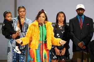LOS ANGELES, CALIFORNIA – JUNE 23: Nipsey Hussle’s family (L-R) Kross Ermias Asghedom, Samantha Smith, Angelique Smith, Emani Asghedom and Dawit Asghedom accept the Humanitarian Award in honor of Nipsey Hussle onstage at the 2019 BET Awards at Microsoft Theater on June 23, 2019 in Los Angeles, California. (Photo by Frederick M. Brown/Getty Images for BET)