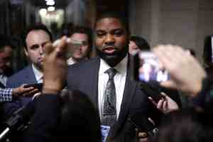 WASHINGTON, DC – OCTOBER 23: U.S. Rep. Byron Donalds (R-FL) speaks to reporters as he leaves a House Republican candidates forum where congressmen who are running for Speaker of the House presented their platforms in the Longworth House Office Building on Capitol Hill on October 23, 2023 in Washington, DC. Members of the GOP conference will hear from the now eight candidates who hope to succeed former Speaker of the House Kevin McCarthy (R-CA), who was ousted on October 4 in a move led by a small group of conservative members of his own party. (Photo by Alex Wong/Getty Images)