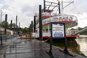 MONTGOMERY, ALABAMA – AUGUST 8: The Harriott, a riverboat, remains docked on August 8, 2023, on the Alabama riverfront in downtown Montgomery, Alabama. Three people have now been charged in the large fight on floating dock Saturday that was captured on video by numerous spectators. (Photo by Julie Bennett/Getty Images)