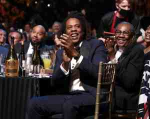 CLEVELAND, OHIO – OCTOBER 30: Jay Z watches performers onstage during the 36th Annual Rock & Roll Hall Of Fame Induction Ceremony at Rocket Mortgage Fieldhouse on October 30, 2021 in Cleveland, Ohio. (Photo by Dimitrios Kambouris/Getty Images for The Rock and Roll Hall of Fame )