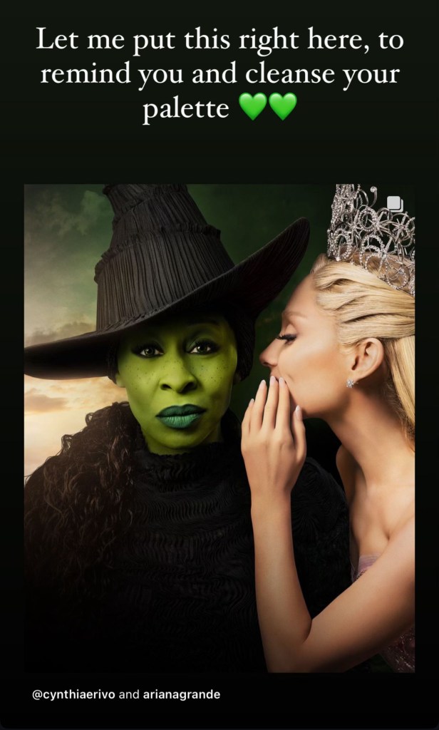 Cynthia Ervio went to post the unedited promotional photo with the caption that reads, “Let me put this right here, to remind you and cleanse your palette.”