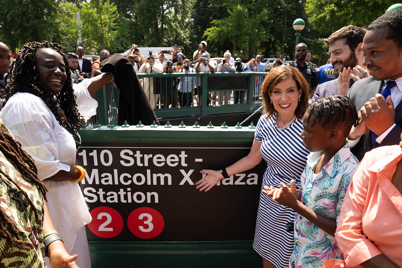 On August 10, Gov. Kathy Hochul signed legislation to rename the 110th Street-Central Park North Station as the 110 Street-Malcolm X Plaza Station.